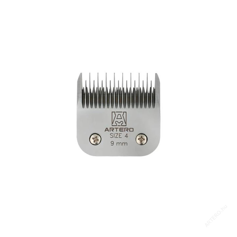 Az ARTERO NYÍRÓGÉPFEJ – 4 (9,0 mm) egy robusztus, erős vágást adó A5/Clip System kompatibilis penge, amely minden elterjedt A5 rendszerű nyírógéppel használható. Az ’F’ jelölés nélküli kialakítás miatt a pengék ritkító ollóra emlékeztetően dolgoznak, így szellősebb, textúráltabb vágást eredményeznek. Tartós acélból készül, megfelelő olajozás mellett ritkán igényel élezést.