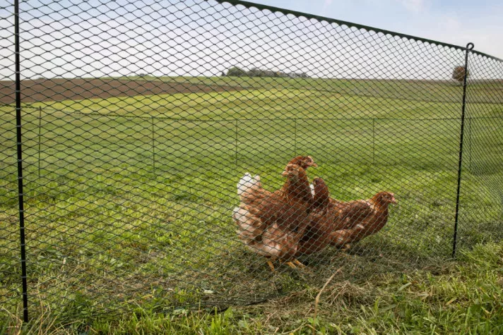 • 2,5 x 2,5 cm-es hálóméret biztonságos védelmet biztosít, megakadályozza a tyúkok és csirkék szökését, és véd a betolakodókkal szemben