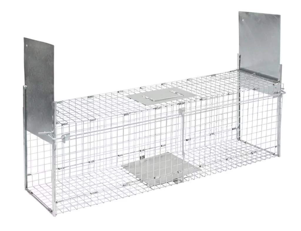 Összecsukható és masszív élvefogó csapda, két bejárattal kisállatok számára mint pl. róka, menyét, nyúl stb.: