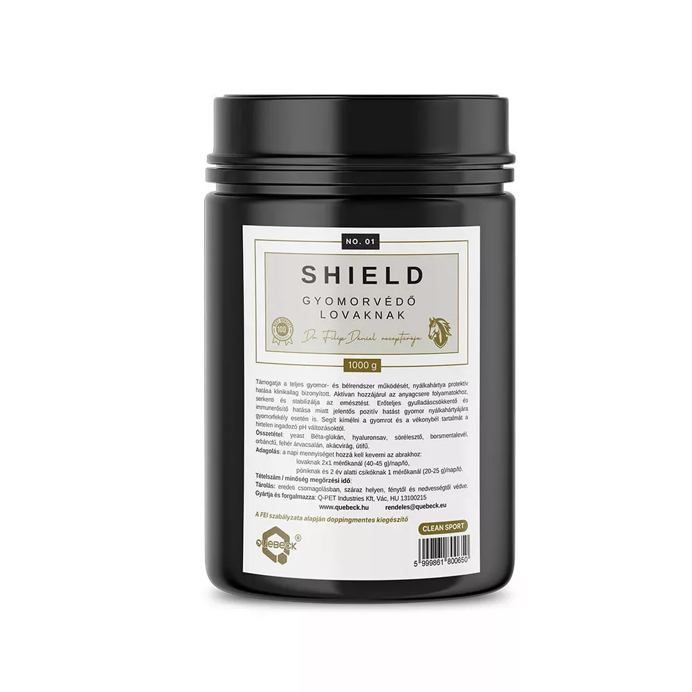 A SHIELD gyomorvédő kiegészítő, az egyre gyakrabban diagnosztizált gyomorfekélyes (EquineGastricUlcerSyndrome, EGUS) lovak segítségére fejlesztették ki.