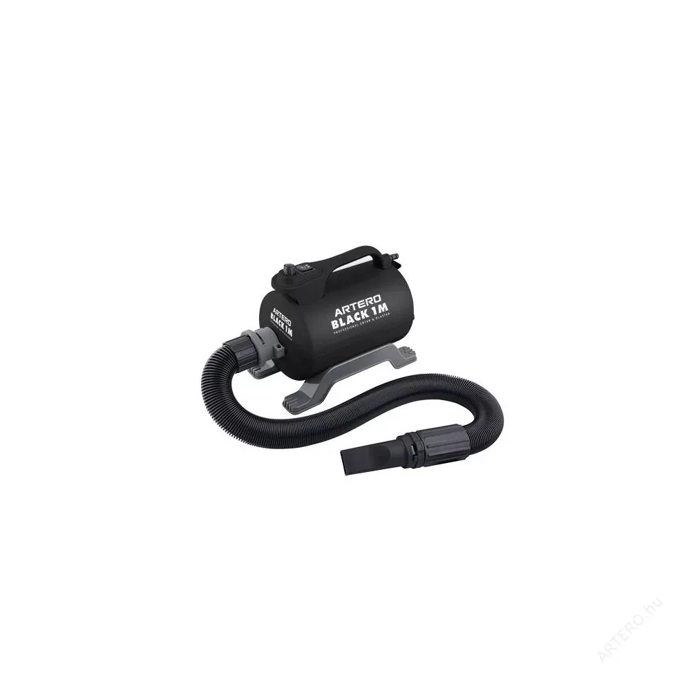 A BLACK – 1 motoros Szárító/Vízkinyomó gyors és hatékony megoldást nyújt a kutyák szárításához, egészen az aljszőrzetig. Állítható levegősebességének és hőmérsékletének köszönhetően gazdaságos, precíz és kényelmes használatot biztosít, könnyen tisztítható szűrővel és 0,7–2 méter között hosszítható gégecsővel. Három szűkítővel érkezik, igény szerint pedig fali rögzítővel vagy gurulós állvánnyal bővíthető.