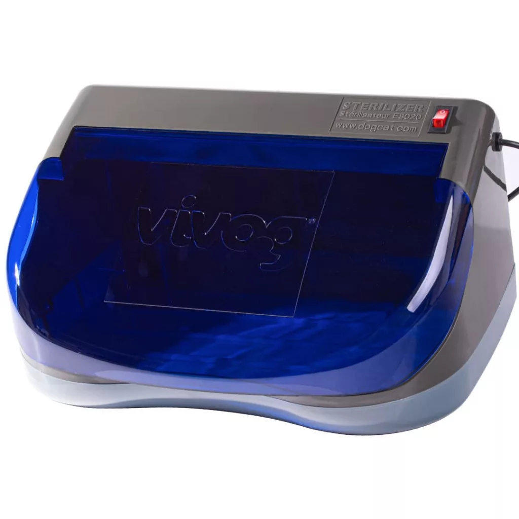 Az ultraibolya sugarakkal működő sterilizátor baktériumölő hatású, minden kutyakozmetika számára elengedhetetlen. A sterilizálás hidegen történik, rövid hullámú UV-sugarak segítségével. Ezek a sugarak erős csírátlanító hatással rendelkeznek, és nagyon rövid idő alatt elpusztítják a bacilusokat, baktériumokat, spórákat, penészgombákat és minden mikroorganizmust – közvetlenül vagy visszaverődés útján.